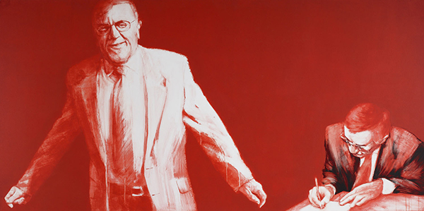 JC en rouge 2008, acrylique sur PVC 244 cm x 122cm